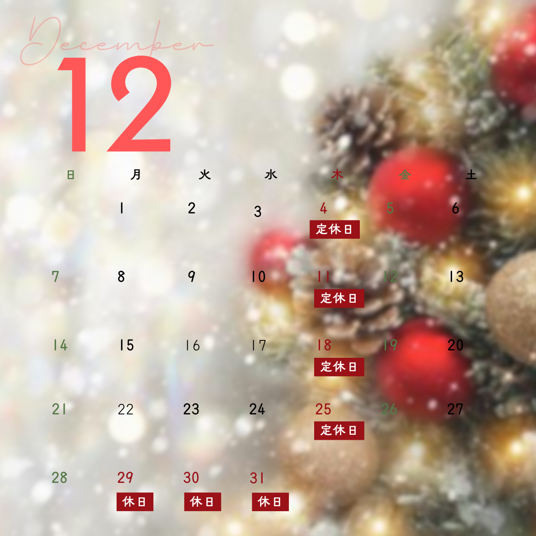 2025年12月のお休み