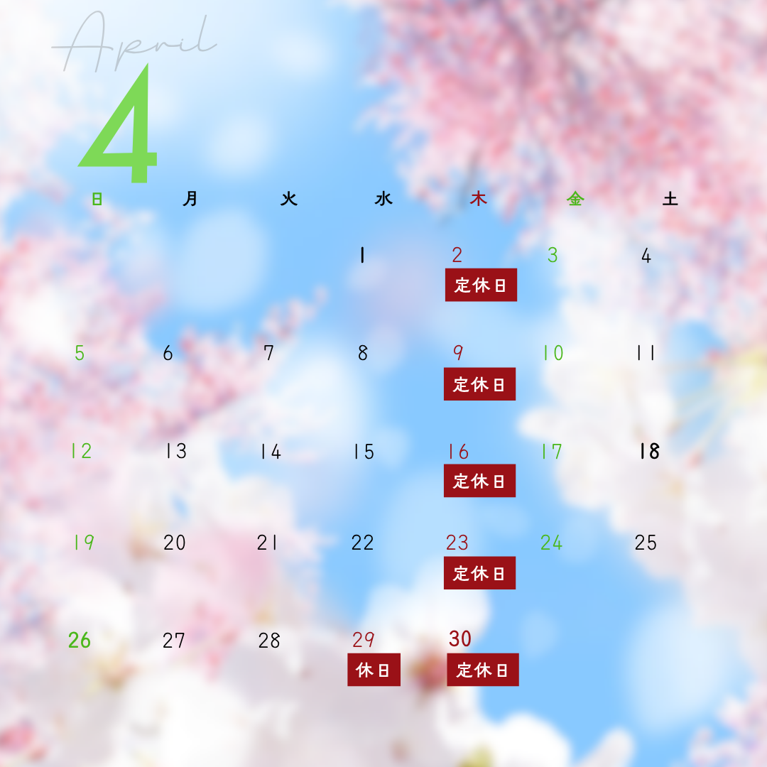 3月、4月限定で、4月30日(火)までですので、是非、ご利用くださいませ。